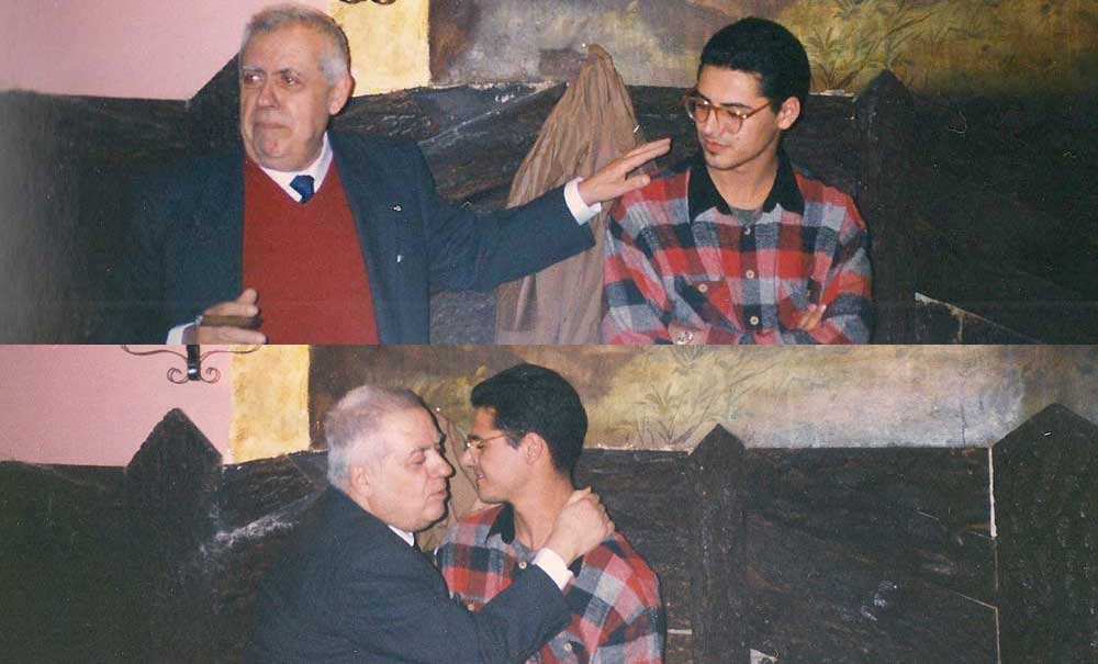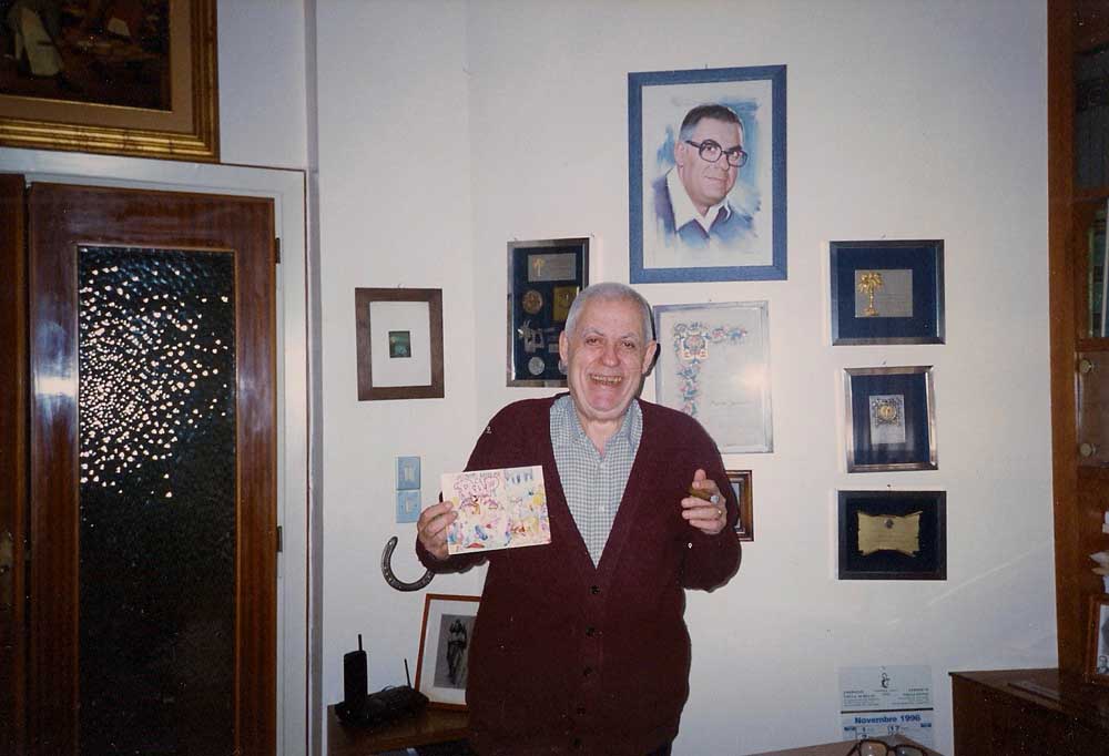 Roma, maggio del 1995. Cena con i soci dello Jacovitti Club in cui Jac mi presenta a tutti come il suo allievo e collaboratore (ormai da circa tre anni) e parla della prossima pubblicazione di RAP. |