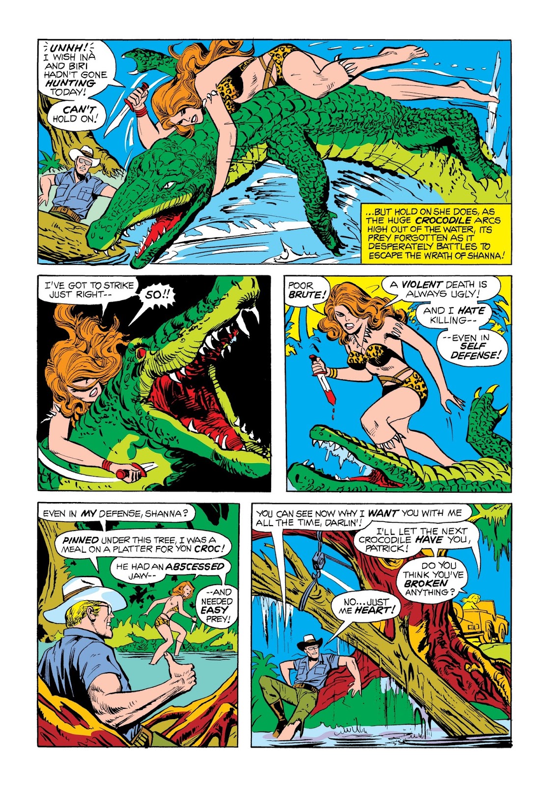 Since this is reprinted in a code book, it’s been edited to cover up nakedness (including an entire missing scene where Carla tries to seduce Ka-Zar but he just points to a whole gaggle of naked bathing beauties to show he’s got his pick of women)…