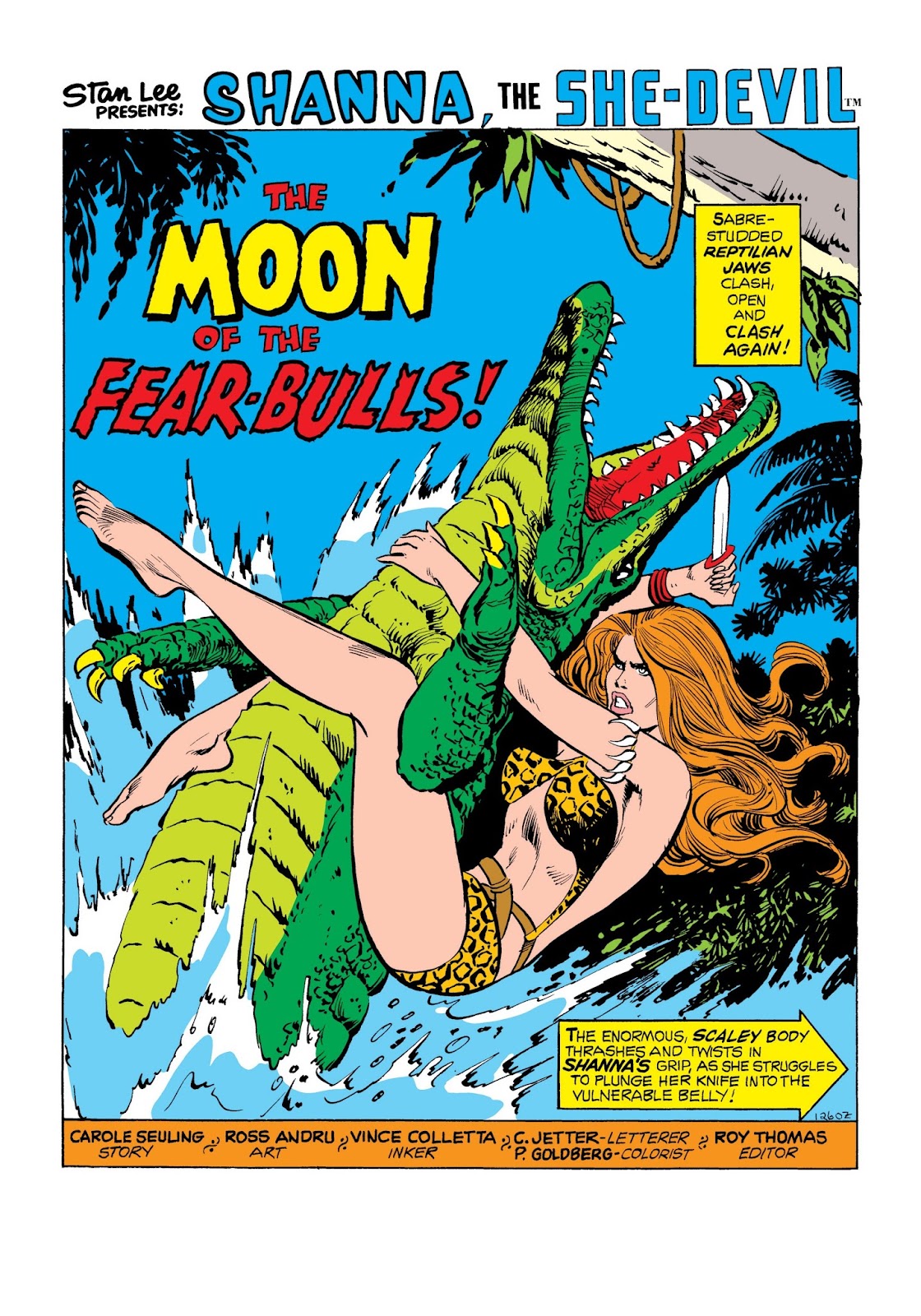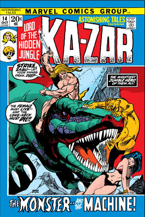 This story reprinted from Savage Tales #1 has been edited to exclude nudity, and sexual content – the end of one page and the beginning of the next are missing, along with edited text in the preceding and following panels (which had featured a conversation about sex, adultery, and human weakness, as well as a panel depicting naked Savage Land women washing). Also, two other panels have been individually edited: In one, the silhouette of Carla’s naked breast is rounded to remove the nipple, and in the other a torn dress is added to her naked floating body.
