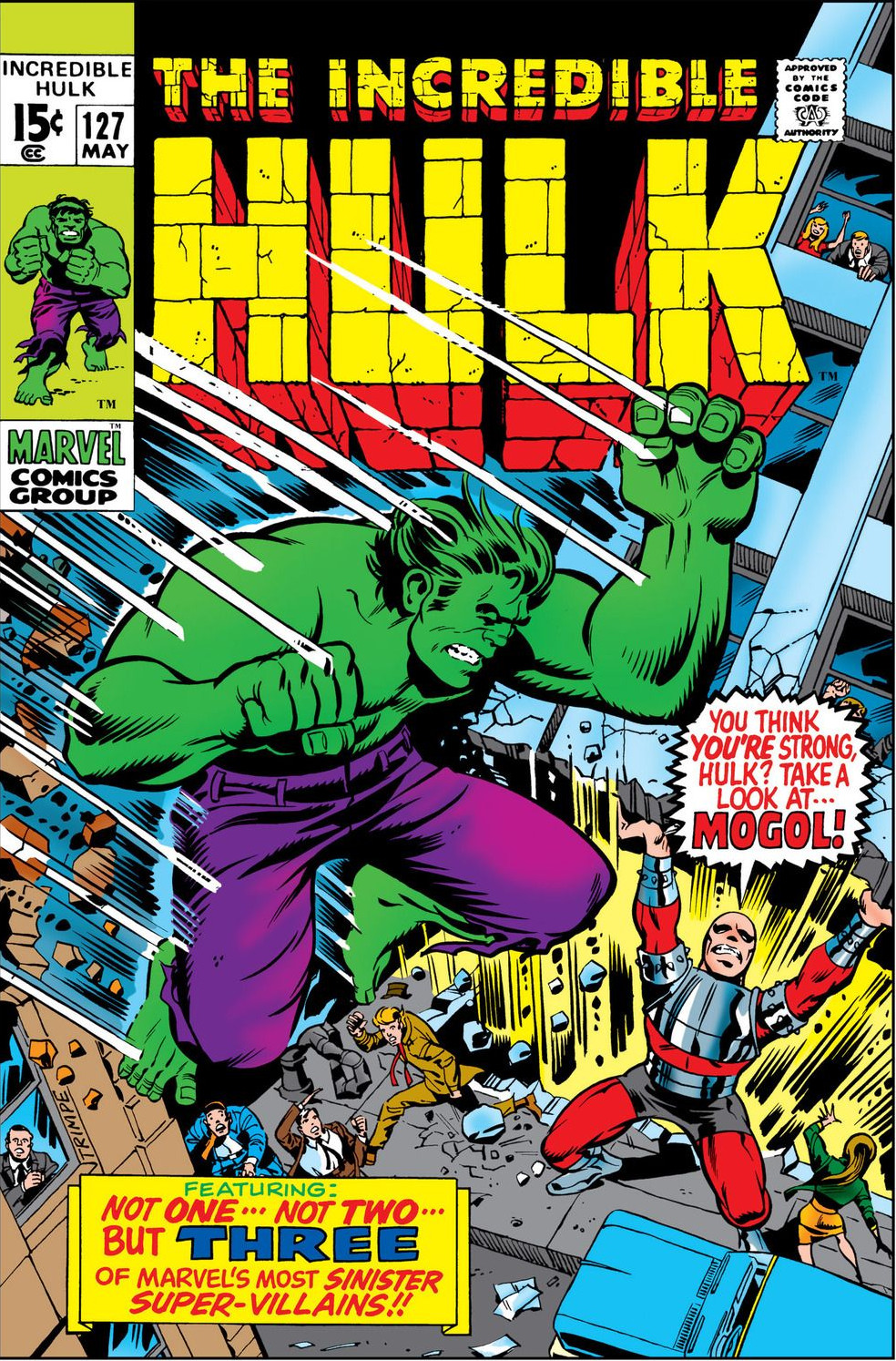 Hulk — vaguely remembering his old foe attacks Mogol. Their fight