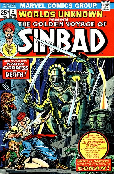 2nd and final issue of this comic adaptation based closely on the same 1974 fantasy movie, a nice job of capturing the spirit of the film (which was a hit with the kids at Fairfield West Elementary and eventually reached cult-status, especially since it featured such geek-cult stars as John Phillip LawTom Baker, and Caroline Munro–not to mention the far-out stop-motion wizardry of the immortal Ray Harryhausen)