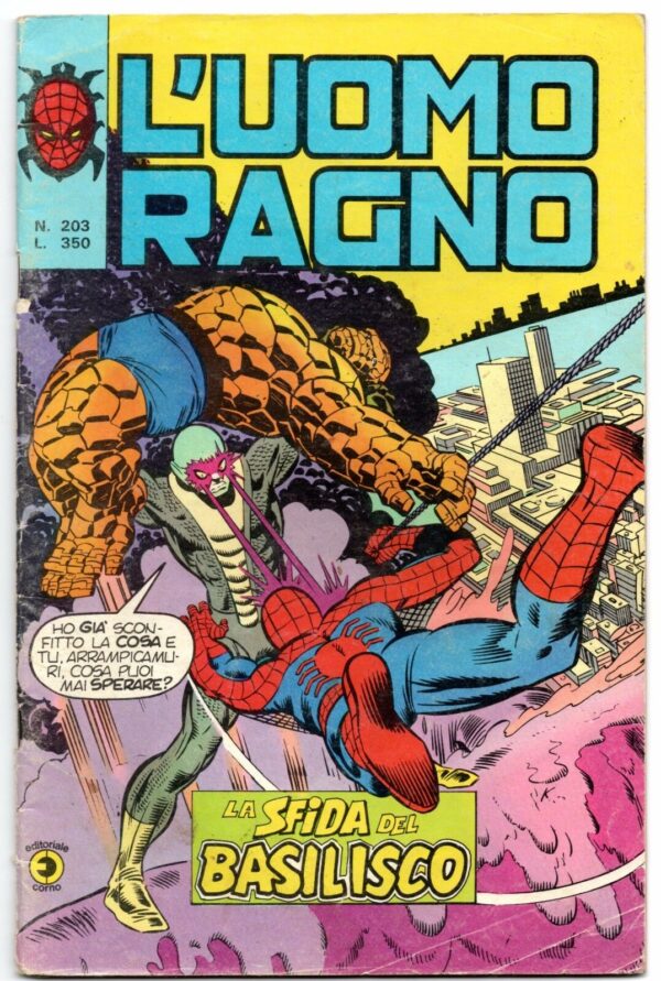Si conclude il pietrificante duetto di Spider-Man con LA COSA con un lapidario finale in cui dopo aver affrontato insieme il Basilisco e fattolo a pesto, il massiccio quarto di fantastico rompe il sodalizio e abbandona la scena buttandosi giù senza paracadute da un cavalcavia dell’ autostrada