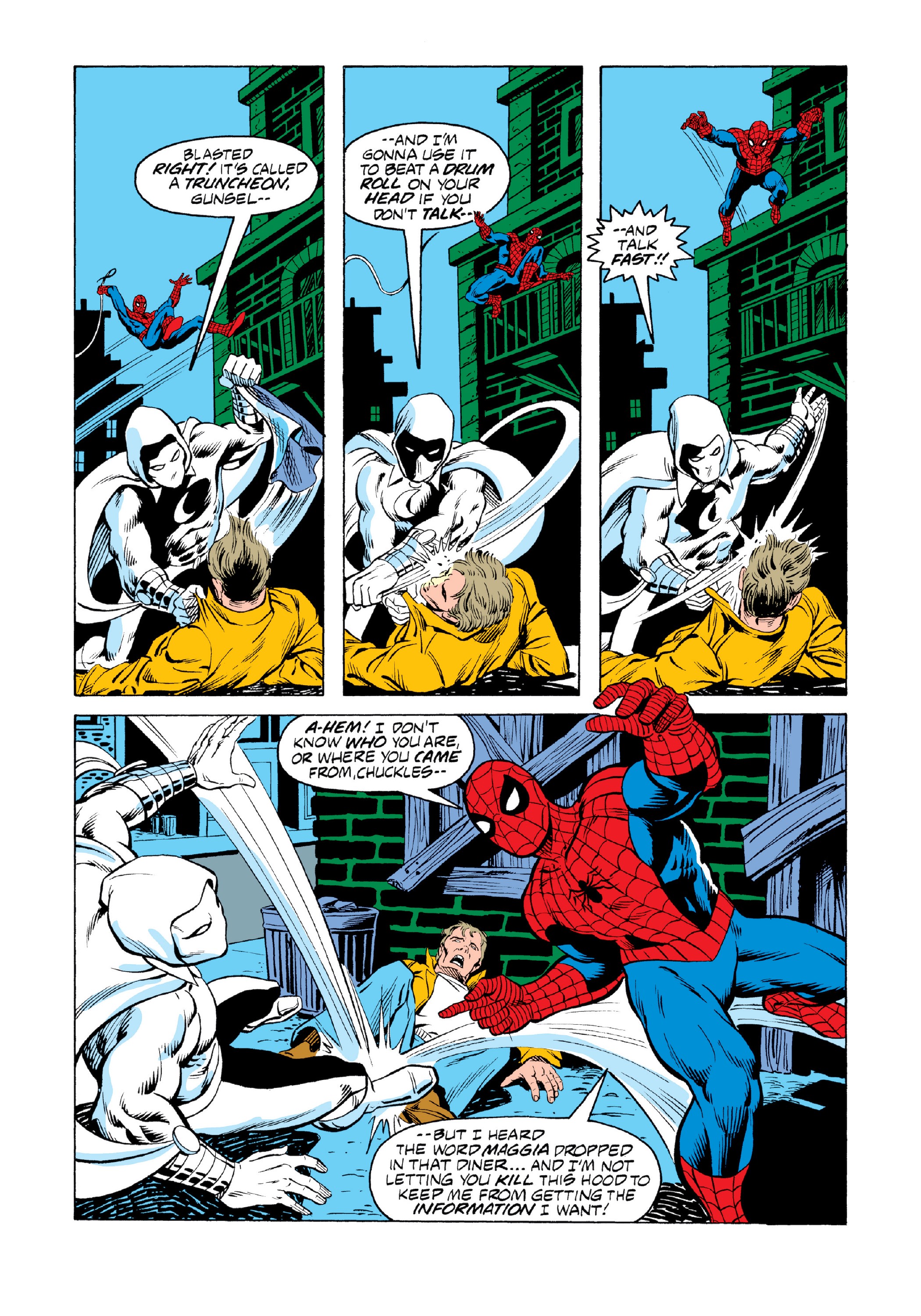 and Frenchie look for clues to help them bust the Maggia, Spider-Man