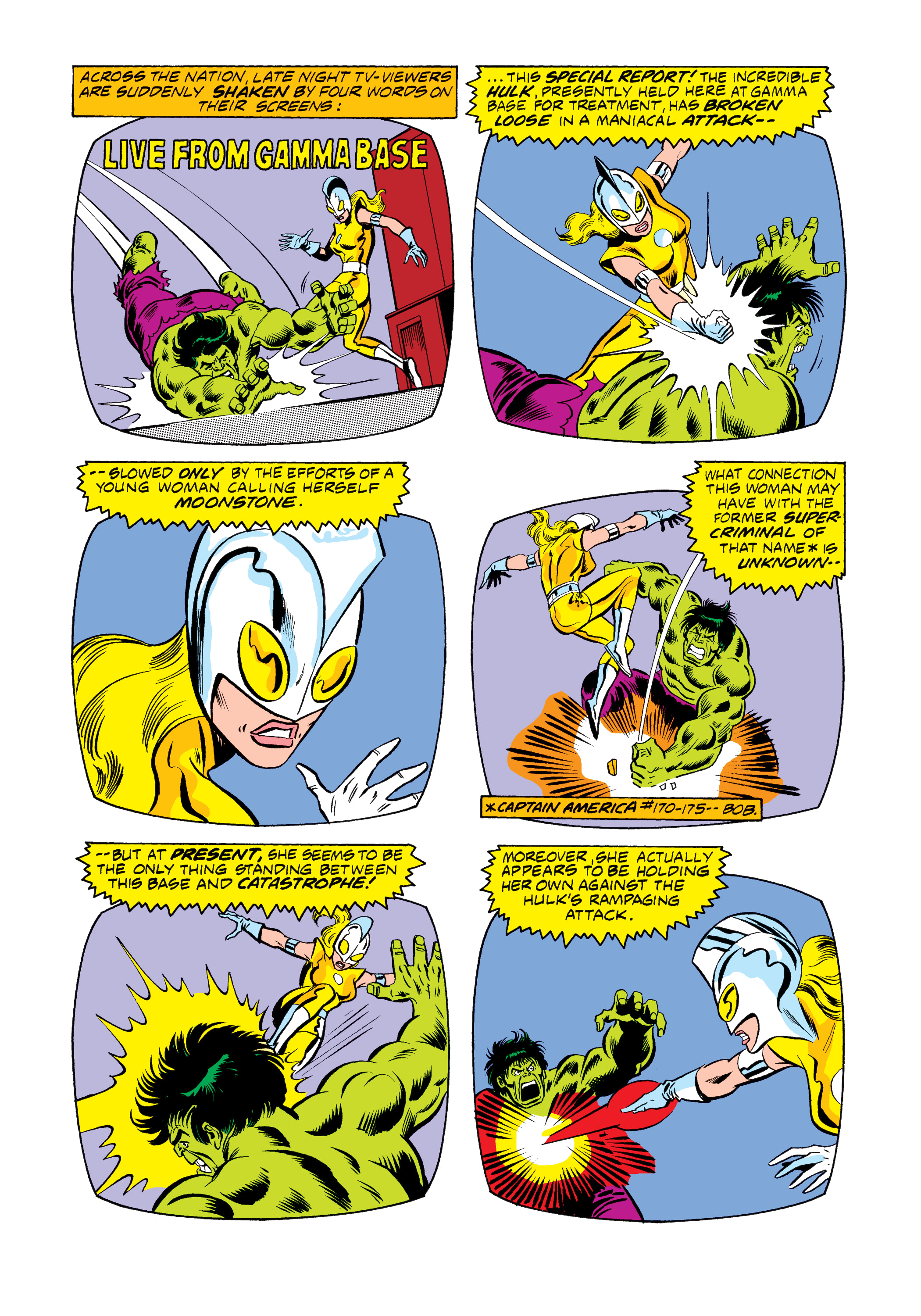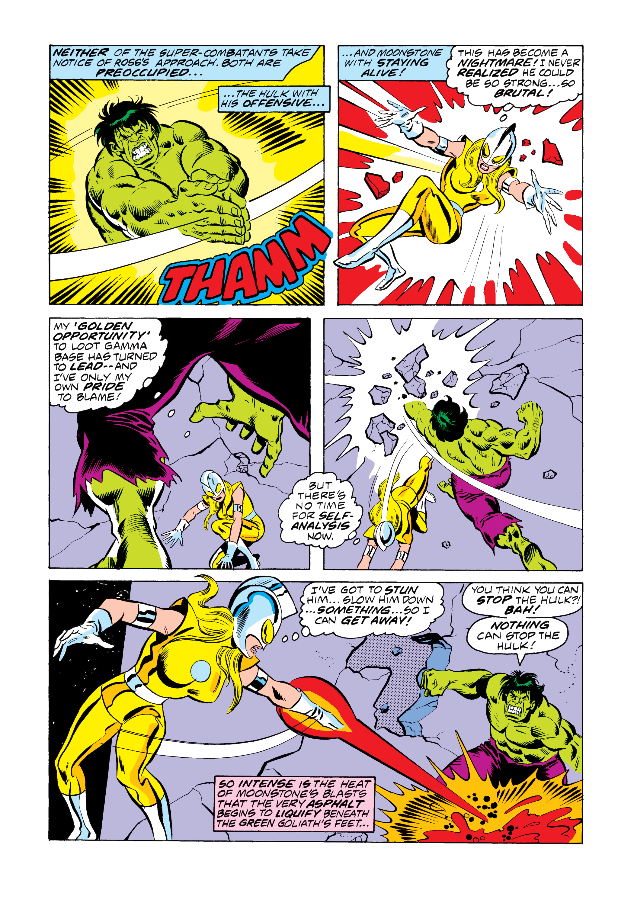 super-hero. The Hulk begins swinging at her, but Moonstone is faster