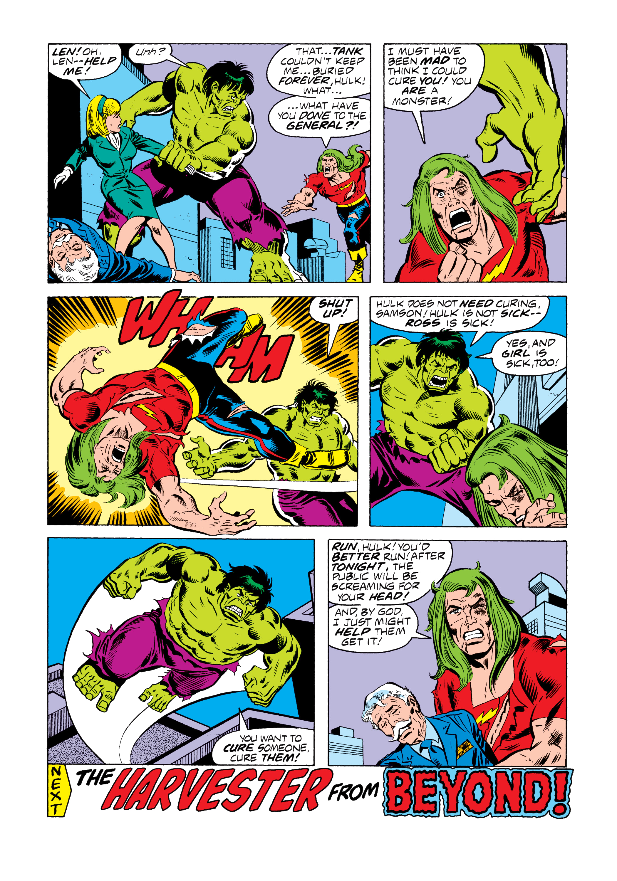 bellows to the air. Samson convinces the Hulk not to hurt Dr. Sofen and