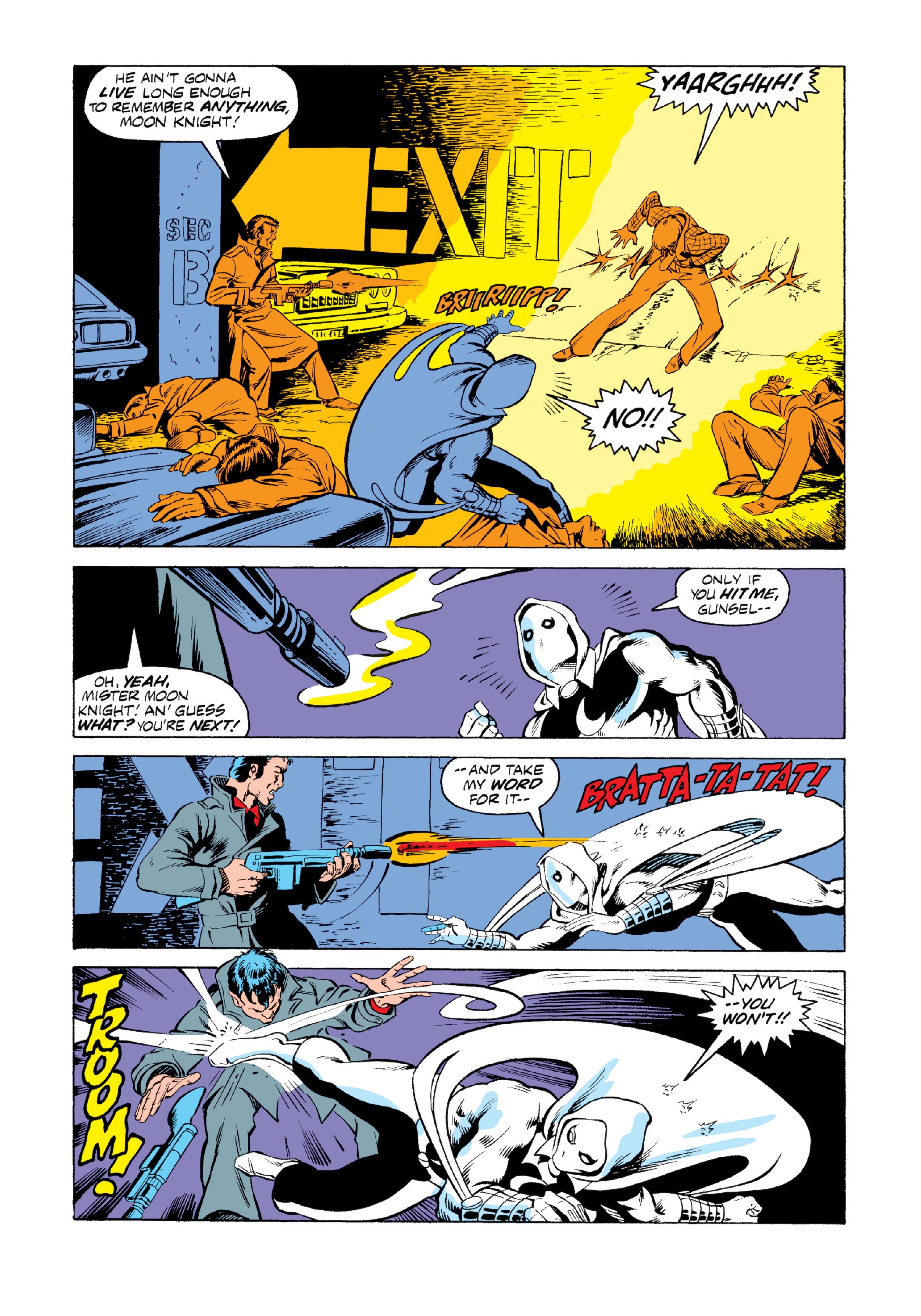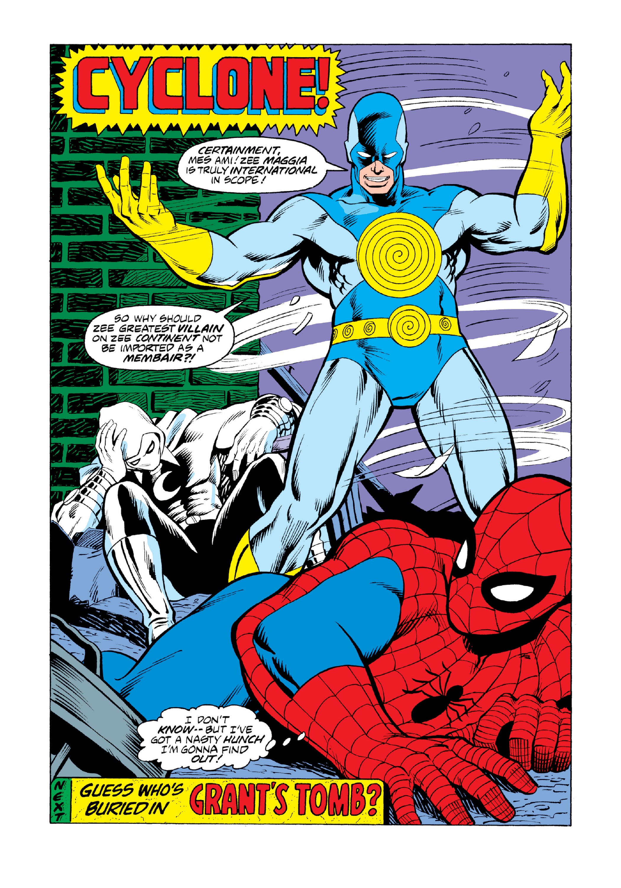 • Frenchie makes reference to the Moon Knight’s last case against the Conquerlord. That happened in Marvel Spotlight #2829 (in Italy in ETC #21-22).