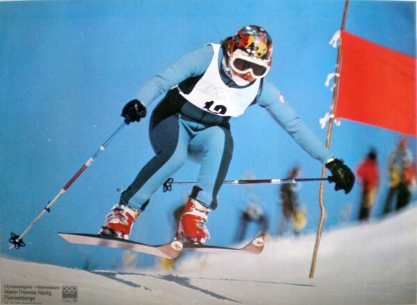 ORIGINAL POSTER VINTAGE 1972 SAPPORO ’72 OLYMPIA SIEGERIN + WELTMEISTERIN MARIE-THERESE NADIG FLUMSERBERGE